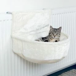 The Trixie Cuddly Radiator Bag offers your cat both a uniquely deep bed to snuggle into and a high edge to lean on. It includes a removable reversible cushion with a short-haired plush cover and polyester fleece filling to provide a particularly comfortable place to rest. The sturdy metal frame is equipped with an adjustable holding device, allowing the radiator bed to be attached to all conventional radiators.