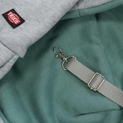 Sling for carrying your puppy or small dog (up to 5kg), safe feeling, with short lead inside, keep your hands free, soft strap, stretchy material, colour: light grey/ mint