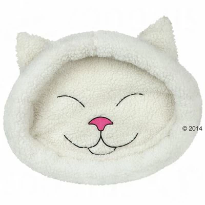 Lovely padded snuggle bed made from ivory lambs fleece style plush in a fun cat’s face design, with embroidered features and cat ears. Especially soft and comfy. Wash at 30°C