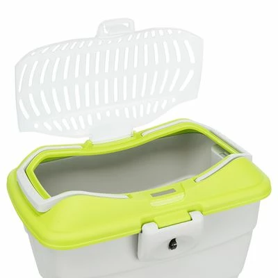 Practical box for transporting small animals, opening at the top for easy access, with petting flap, sturdy shoulder strap and 2 plastic handles in the lid, easy-care material, made of plastic