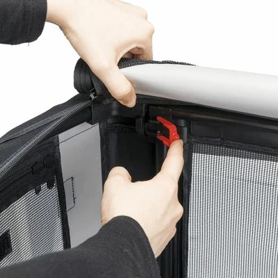 The foldable Trixie Vario Mobile Kennel is a versatile accessory, acting as a great pet kennel for when you’re away from home. No matter whether you are camping, travelling or simply staying away from home, this Trixie Vario Mobile Kennel offers your dog the perfect space to relax in. Floor straps and pegs included with the crate help to secure the kennel firmly to the floor. It is easy for your dog to enter the box as it can be opened on three different sides. A net insert all the way around allows for optimum ventilation in the kennel and can be closed when there is too much sun coming in or it starts to rain.