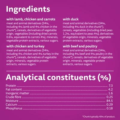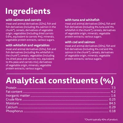 • Tailored recipes: with fish, meat or poultry in a gravy, with extra vegetables in each variety